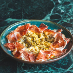 Delicioso revuelto cremoso con alcachofas frescas y un toque crujiente de virutas de jamón ibérico. Un equilibrio perfecto entre tradición y sabor mediterráneo.