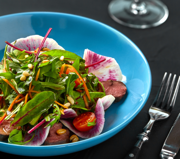 Selección de verduras frescas de temporada, cocinadas a la plancha para resaltar sus sabores naturales. Un plato ligero, saludable y lleno de color.