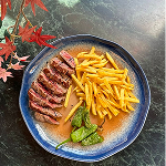 Carne de primera calidad, cocinada al punto perfecto y acompañada de guarnición. Un clásico imprescindible para los amantes de la buena carne.